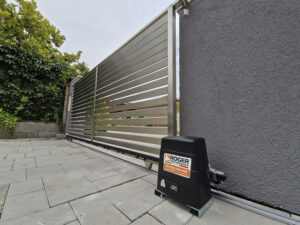 – Lắp đặt motor và thanh răng: Sau khi vị trí thanh răng đã được xác định, nhóm kỹ thuật sẽ tiến hành gắn motor và thanh răng sao cho chúng khớp hoàn hảo, đảm bảo cổng di chuyển mượt mà trong quá trình vận hành.